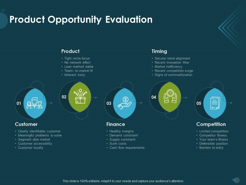 Here is another design from the collection of finance PowerPoint templates to constitute a full-fledged financial report. Use this template to evaluate your company’s products and services. Using the five-step format, you can highlight the importance of customers, finance, timing, competition, etc, using this finance management PPT template.