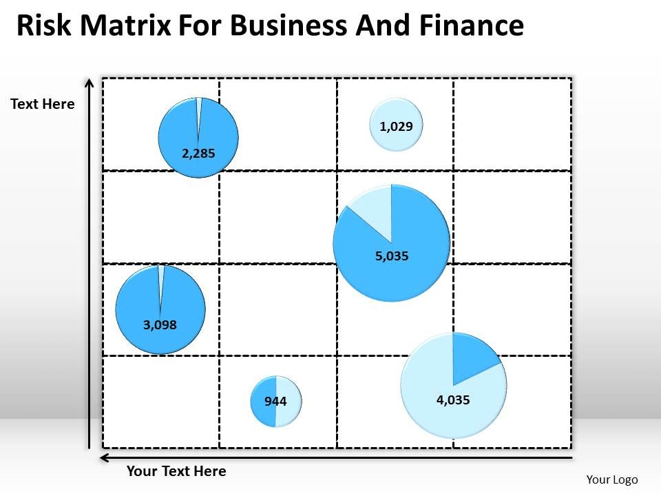 Here is a risk matrix PPT template to uniquely compare your business and finance threats using a pie chart placed in a matrix. Exploit the editable nature of this must-have slide for your finance department presentation to present your data impressively.