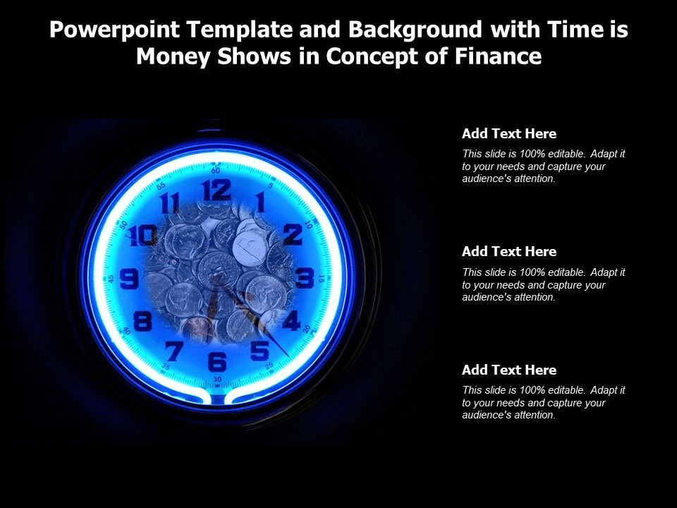 Use this template in the essence of timely understanding and application of finance. The clock background inspires the importance of early finance management and can help focus on key pointers needed to work upon.