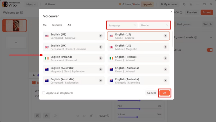 End-users of this software have got an endless number of voice styles and accents to select from to make their talking photos astonishing. You don’t have to worry if you are English and need to sound like a Chinese person. Wondershare Virbo has got you covered. Within a few clicks, you can choose from the bank of accents and voice styles it supports and import to your talking photo.