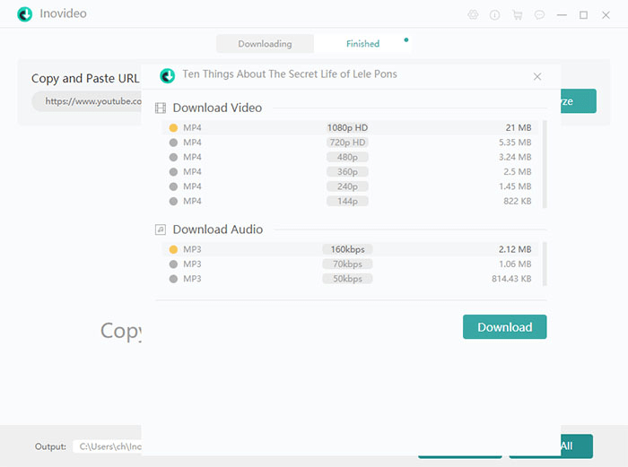 - Now, click the button. The video starts downloading. Once the downloading is finished, you can find the offline video in the ‘Finished’ tab. Click the file to open and watch it now.