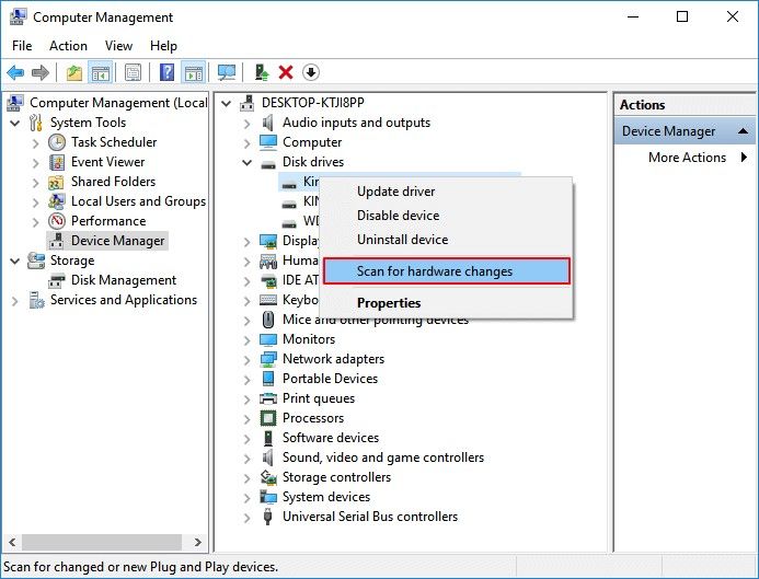 Step 4: Choose the ‘Scan for hardware changes’ option.
