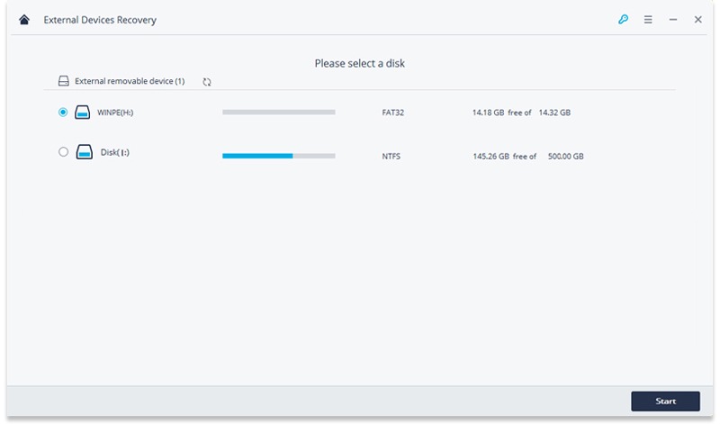 Select the media from your SD card you want to recover and click the ‘Start’ button.