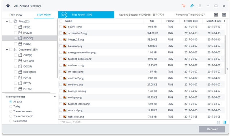 A quick scan starts to search for your lost data. You can recover more files by using the ‘All-Around Recovery’ option.