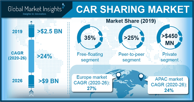- Subscription-based: customers pay a monthly/annual fee for membership, and additionally pay hourly/daily for a car taken