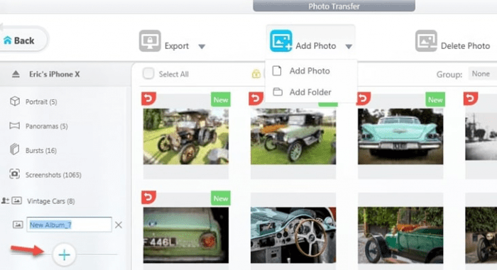 It allows you to select and transfer multiple pictures or a complete album at a time.