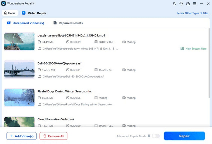 - Batch Repair: Regardless of format, the tool lets you repair multiple damaged videos and save significant time.
