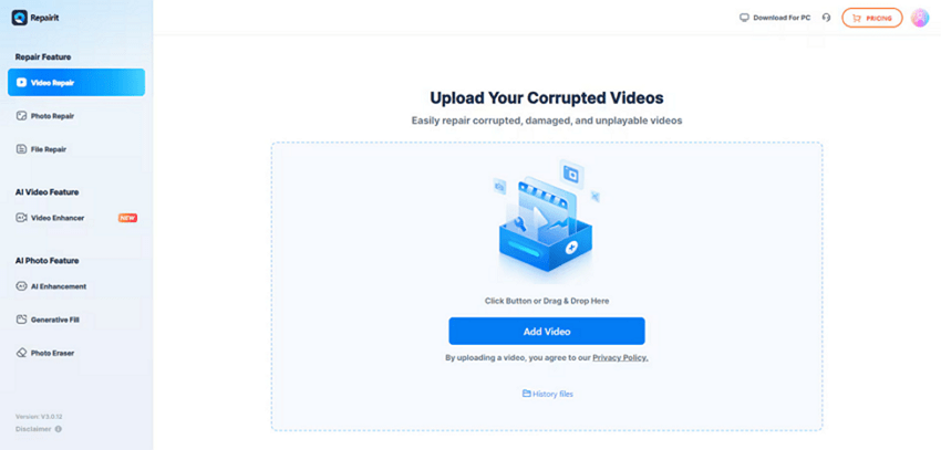 When dealing with small-sized videos, an efficient online solution is often the best choice. Building on the exceptional features of its offline software, Repairit Online also offers an online video repair tool. This corrupt video fixer provides a seamless way to repair damaged videos for users who prefer quick online fixes.