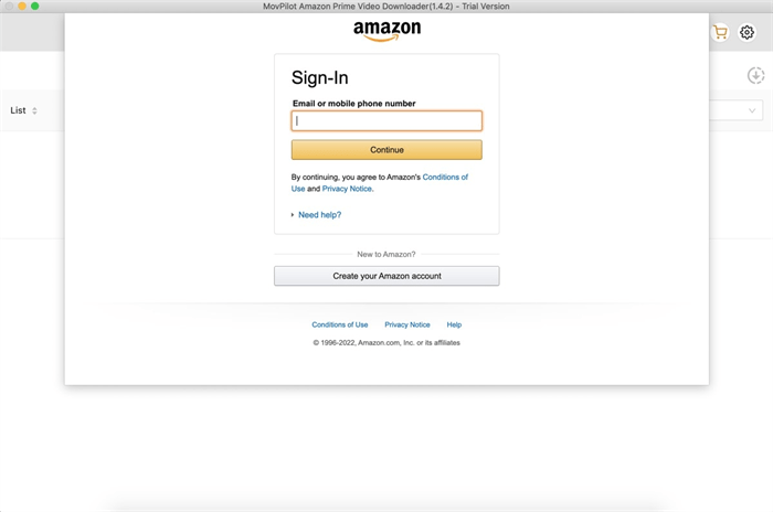 Step 1: Download, install, and launch MovPilot Amazon Prime Video Downloader. Then log in to your Amazon Prime Video account.