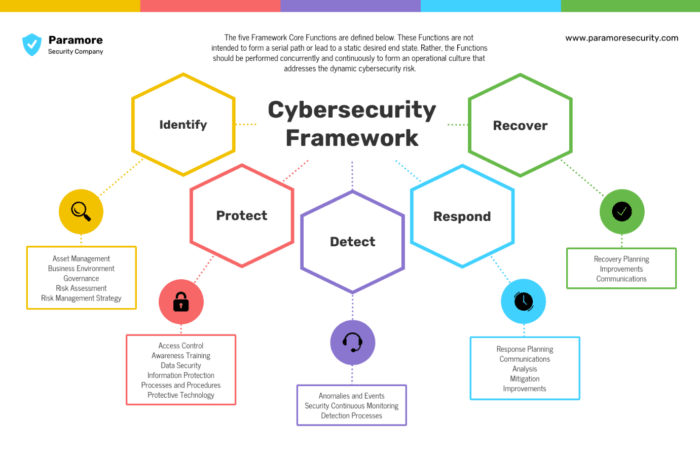 Before we explore these three career options, let’s get a brief overview of what a cybersecurity career entails. These are essentially defined in the Five Framework network diagram shown below. To get an overview of cybersecurity, think about the protection of computer systems, networks, and data from unauthorized access, cyberattacks, and data breaches. Cybersec overall needs one to have a strong foundation in math, computer science, and information technology.