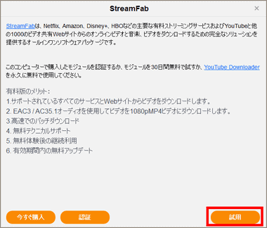 If you want to try StreamFab without purchasing a license, use “Try.”