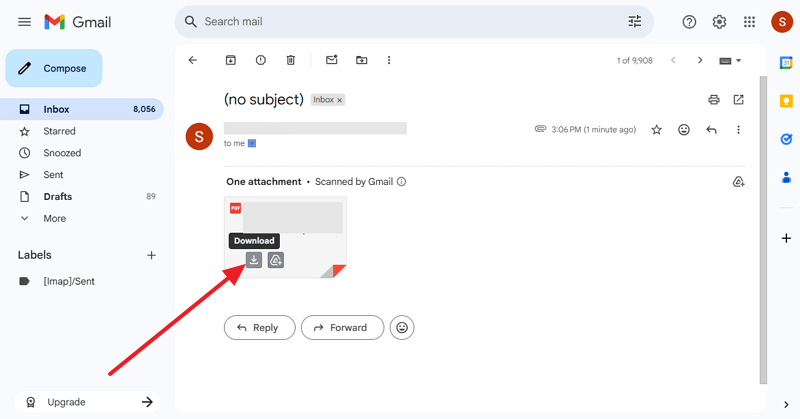 Step 2. Go to the received mail on PC, hover over it, and choose the “Download” icon.