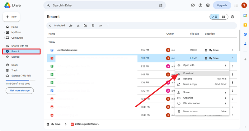 Step 2. On PC, head to the “Recent” tab, press the “Three Dots” icon, and choose the “Download” option.