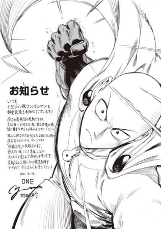 The sudden hiatus was announced through an illustration featured on Shueisha’s Tonari no Young Jump website, where the manga is typically released. The announcement made by the original webcomic creator, ONE, and the manga artist, Yusuke Murata, cited the need for modifications to the Ninjas Arc storyline as the primary reason for the delay.