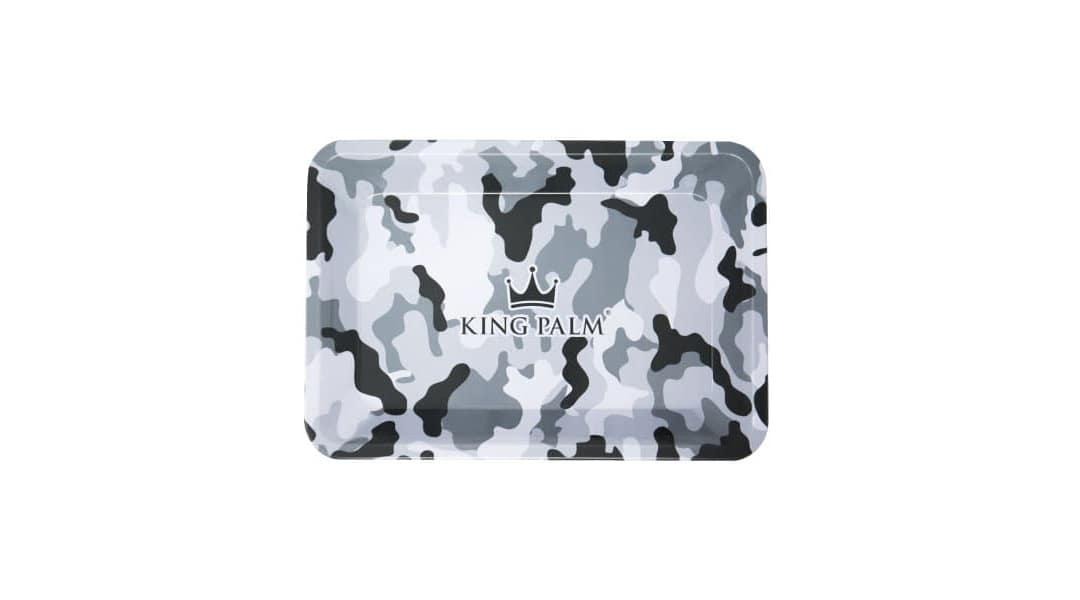 Not all girly rolling trays are pink! The Metal Rolling Tray – Snow Camo features a modern gray and white camouflage pattern that blends in with any decor and is one of many cute rolling trays offered by King Palm. The raised edges on the tray keep the rolling area clean—crumbs are held in place and don’t fall off the edge, meaning they can be used again in the next roll and no weed goes to waste! This tray is small, 7 by 5.5 inches, so it is the perfect size to tuck away in a compact workspace. It can also easily be tossed in a backpack for travel. The metal material ensures that it will survive frequent travel and be ready for on-the-go rolling