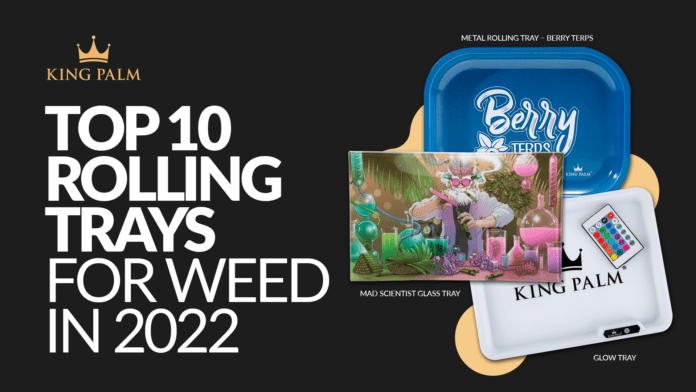 There are a ton of places to find cool rolling trays for cannabis. Some of the best for sale are from the King Palm company. Notorious for their slow-burning and all-natural leaf blunt cones, they recently branched into selling many other cool 420 accessories. While many people may choose a DIY rolling tray with a paper plate, it feels a hundred times better to use a glass or metal rolling tray. Check out any of these rolling tray options for sale from King Palm below.