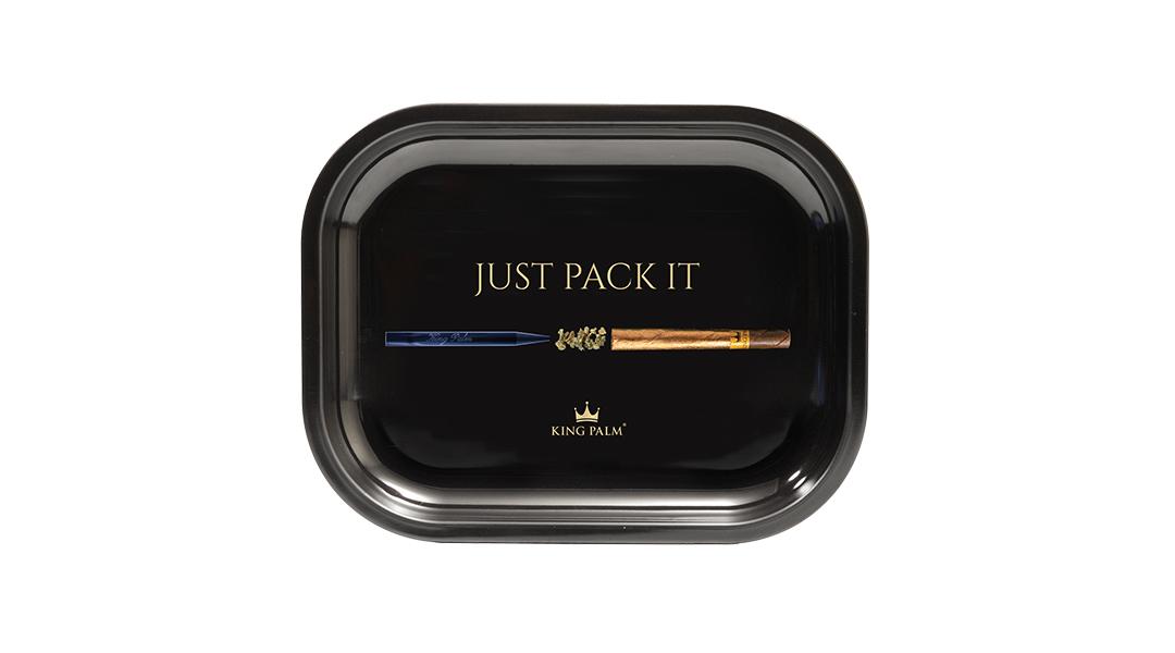If on-the-go rolling is important, look no further than the Gold Roll Just Pack It Tray. The design is a celebration of the ease of packing a King Palm roll, which is supported by the tray’s compact stature. This is King Palm’s most compact tray. At 7 inches wide and 5.5 inches tall, it is the perfect travel companion for weed enthusiasts. When traveling, a leg or book might be the most obvious choice of surface to roll on, but it can be so much easier (and cleaner!) with a small metal rolling tray. This tray provides just enough solid surface to have the flat space needed to roll and features a lifted edge that helps keep all of the weed in place. If there was no tray, loose bud may spill out and could get contaminated with germs or dust. No one wants to let any herb go to waste, so keep it clean with a compact metal rolling tray!