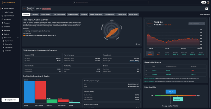 BestStock AI is an AI-powered Stock data processing platform with a mission to provide our users best global financial market data in the shortest time. It is an automated financial analysis system for professionals and long term investors which doesn’t require any manual work. BestStock AI utilises a mix of deep corporate financial intelligence, combined with AI powered insights, to then educate users enabling them to be better investors. It also has a badass stock compare feature to do an instant quick analysis between many tickers side by side on Key fundamentals, valuations, operating metrics and earnings performance in up to 50+ columns so you can quickly find the winners.