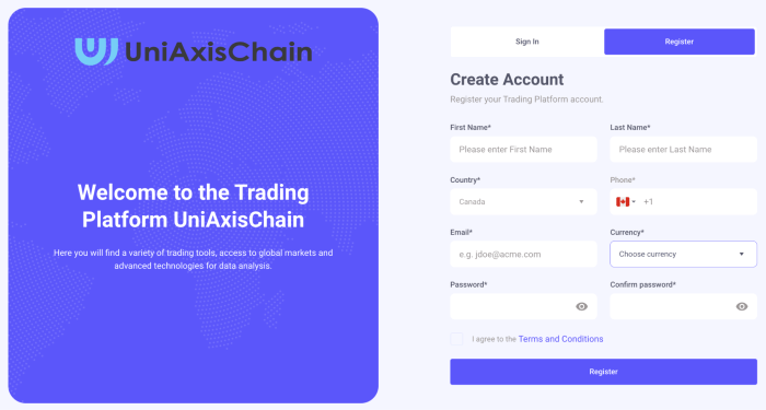 Uniaxischain.com reviews : Registration