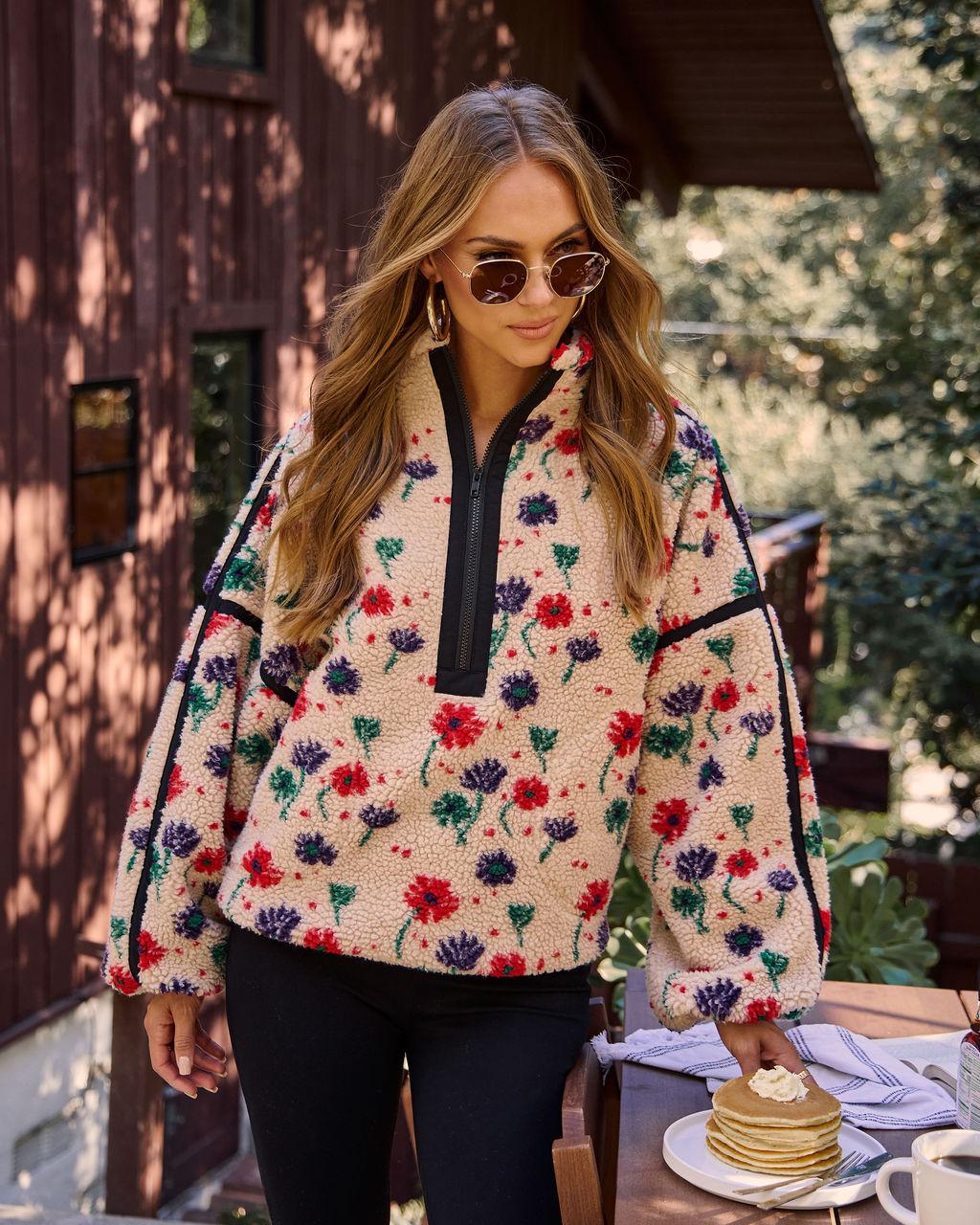 Pauleen Sherpa Floral Quarter Zip Sweatshirt – $94.00