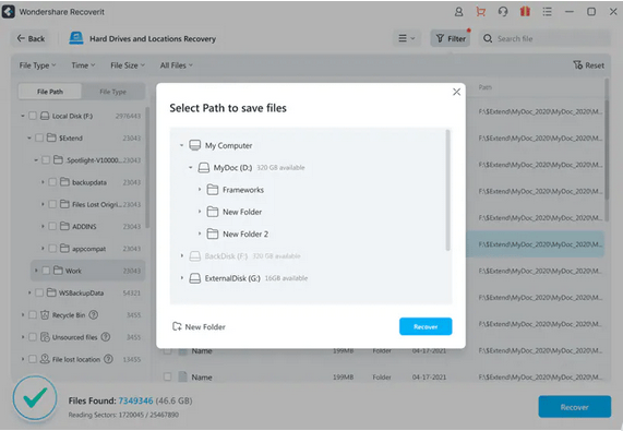 When the preview seems fine, hit the ‘Recover’ option at the bottom-right for retrieving the files to a chosen folder. It would be wise to save the files at a different location from where they were lost.
